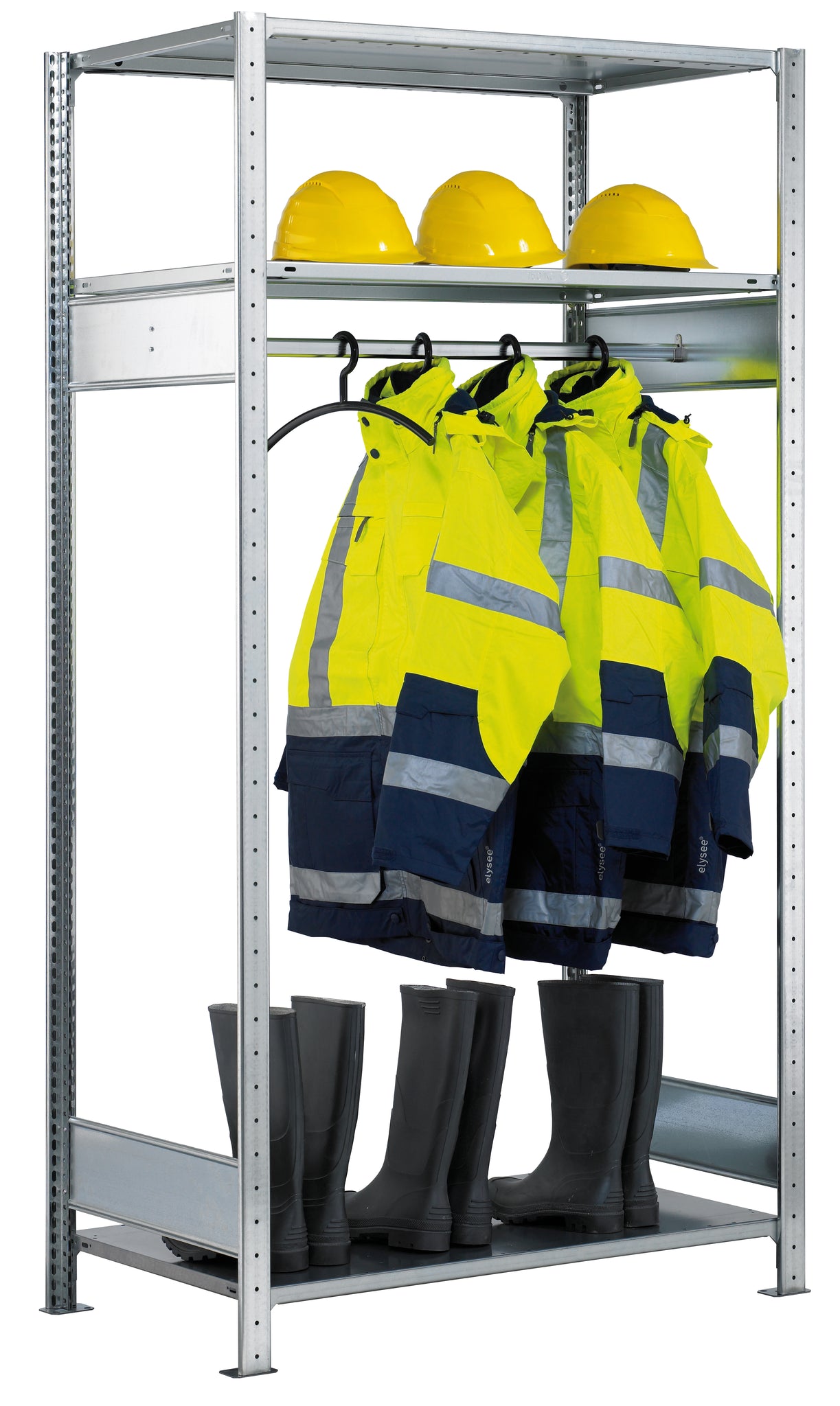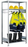 dasDas hochwertige Stahlregalsystem eignet sich mit seinen verstellbaren Lagerregalen, hängenden Kleiderschienen und kompletter Verstellbarkeit dank schraubenloser Regalkomponenten, die an die verschiedenen Formen von PSA und Gesundheitsschutzausrüstung angepasst werden können, perfekt für die PSA-Lagerung.
