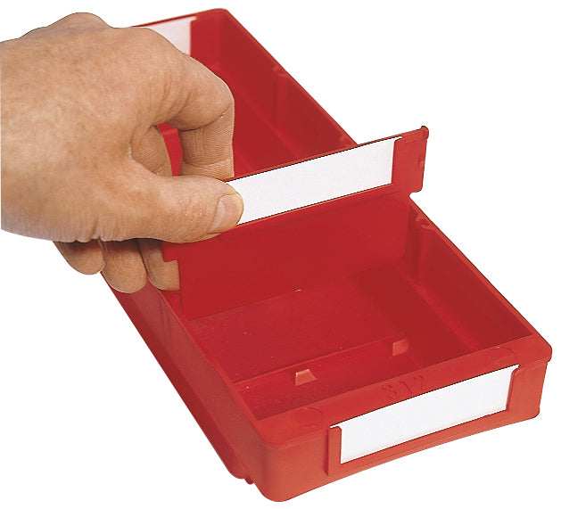 Verfügbar für Regalbehälter in allen vier Breiten: 90,120,180 und 240mm und alle Regalbehälterteiler sind 95mm hoch - mit Ausnahme der 240mm breiter Teiler die auch als 150mm hohe Option passend zu unseren größeres Regalplatz-Sortiment