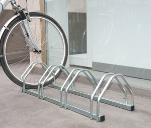 Bike Racks for parking 3, 4, or 5 Bicycles on one compact bicycle rack. Outstanding value bike racks for cycle parking more than one bike in one place, such as the bike parking required in public bicycle areas, schools, colleges and workplaces.