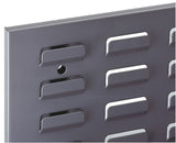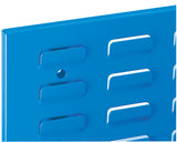 Parts Bins Louvre Panels. Top quality steel storage panels for plastic parts bins available in a multiple choice of colours and sizes. Louvred panels made to store our plastic parts bins on workshop walls and our dedicated parts bin storage racks.