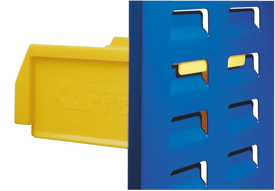 Kappes parts bin Louvre panels are suitable for compatible parts bins and are the secure method of storing Rasterplan series parts bins on storage panels and racks for tidy efficient organisation of essential parts and accessories.