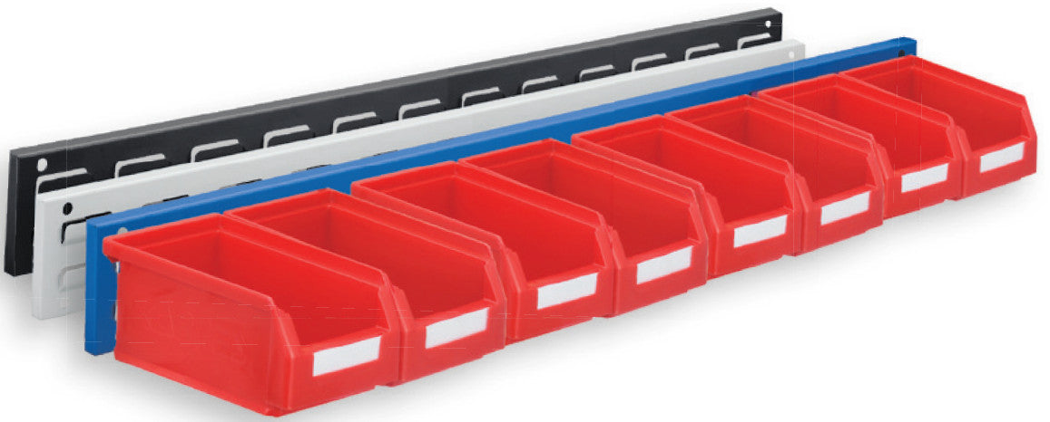 Wall Rails and the small parts bins are high quality items made in Germany, as used throughout the Kappes tool and parts storage range, with pre-formed fixing locations for wall mounting, and with a wall rail formed from steel, suitable for industrial workshop applications.