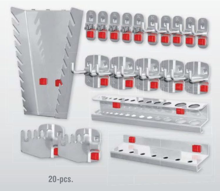 Tool Board Hooks, and Tool Holder Sets. Introducing the innovative ABAX Tool Holders. The fast and secure Tool Storage system. High-quality tool holders, tool hooks and accessories for the Kappes perforated panel tool storage systems.