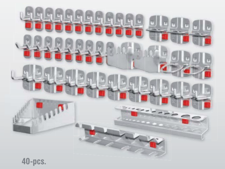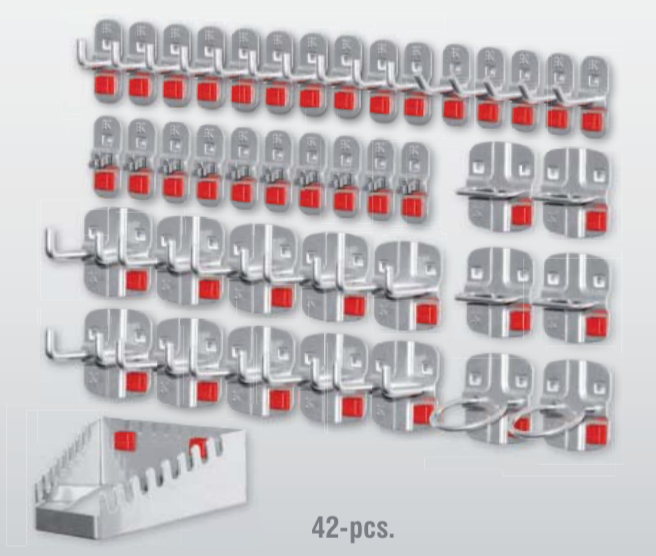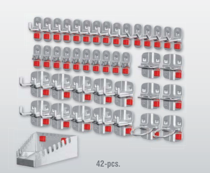 Each kit has a selection of ABAX hooks and tool holders to store multiple tool sets on the Rasterplan Tool Boards. Fast access to tools, the optimum organisation of tools and the added benefit of being able to identify any tools that are missing.